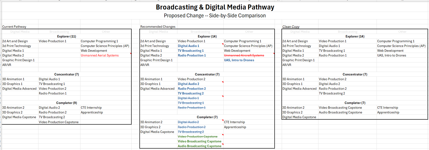 Here is a very short survey to collect information regarding a proposed pathway update to the Broadcasting & Digital Media Pathway. Please take 5 min and review the proposed change and give me some feedback. (proposed changes in survey but also attached)