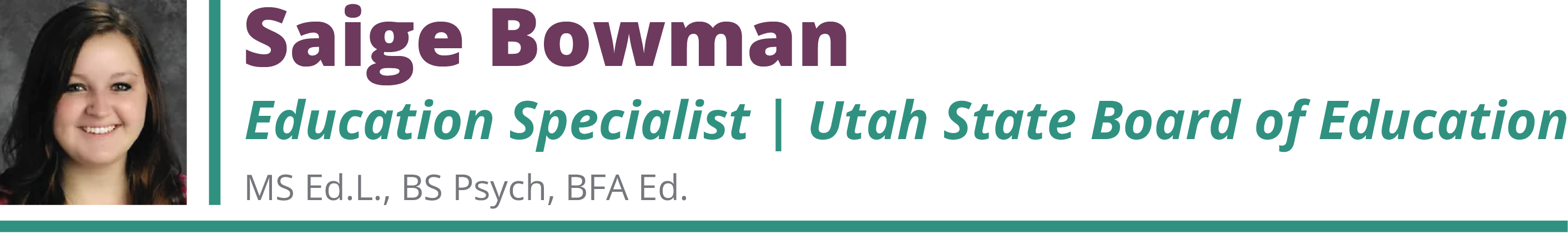 [cid:423d0265-b335-4659-b9ab-97fb3e7e5cdf] [cid:7cc4b433-d567-4280-bd38-24459f3fa2fd] 801-946-1958 | [cid:85558755-6d6c-4837-b3bf-4429c1ff4f3c] saige.bowman@schools.utah.gov | [cid:8e3c5e8e-5ad0-41fc-8f08-263d72b5e0c0] schools.utah.gov/ctehttp://schools.utah.gov/cte [cid:b522a888-8486-4484-8daa-e8f116972650] Book an appointment with mehttps://outlook.office365.com/owa/calendar/SaigeBowman@schools.utah.gov/bookings/ | [cid:9559a082-5a7e-47cc-a21e-7056364c6dbf] [cid:40e75290-21e8-41ee-8213-b50975e0c718] Join my listservs: CTE Visual Artshttps://lists.uen.org/mailman3/lists/cte_visualarts.lists.uen.org/ | Automotivehttps://lists.uen.org/mailman3/lists/cte_automotive.lists.uen.org/